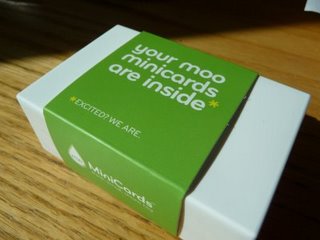 I was at an event a week or so ago, when I decided that my business cards are out-of-style. Luckily, that same night, a trendy professional was handing out his “minicards” with personalized photos on the back, purchased from moo.com.