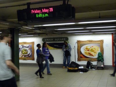 This is definitely one of the most creative subway ad campaigns I’ve seen in a while. The creatives behind this one deserve a big pat on the back for thinking of such an interesting idea. Besides adding a little class to the Union Square subway stop, they also had multiple people stopping by the title cards, reading for more information. And, although I didn’t get a picture, Buitoni also had turnstyle advertising at this station.