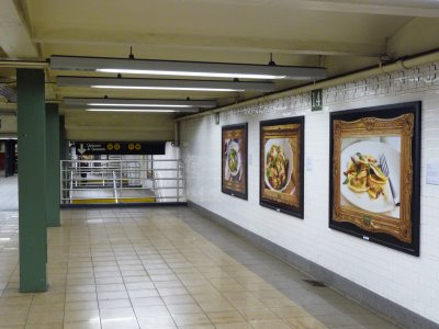 Above: From a distance the Buitoni ads appear to be framed works of art with labels denoting the “artist”, “title” and description.Buitoni, the pasta brand owned by Nestlé that claims to be “The Italian Art of Food”, has recently turned the 14th Street Union Square subway start into a pasta art exhibition.