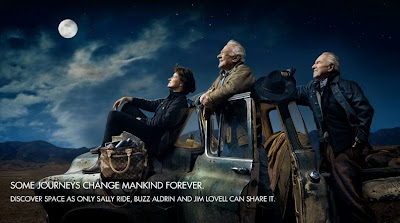 (Above: On July 20, 2009, Louis Vuitton advertised with a drop-down ad that read “MEN WALK ON MOON on July 20, 1969. 40 years later, Louis Vuitton is taking you on a Journey Beyond.” The ad links to louisvuittonjourneys.com.)Louis Vuitton is taking a new direction on advertising. With the recent 40th anniversary of putting a man on the moon, Louis Vuitton is taking the opportunity to honor the journeys of three space heroes: Jim Lovell (commander of Apollo XIII), Sally Ride (America’s first woman in space) and Buzz Aldrin (the second man to step on the moon).