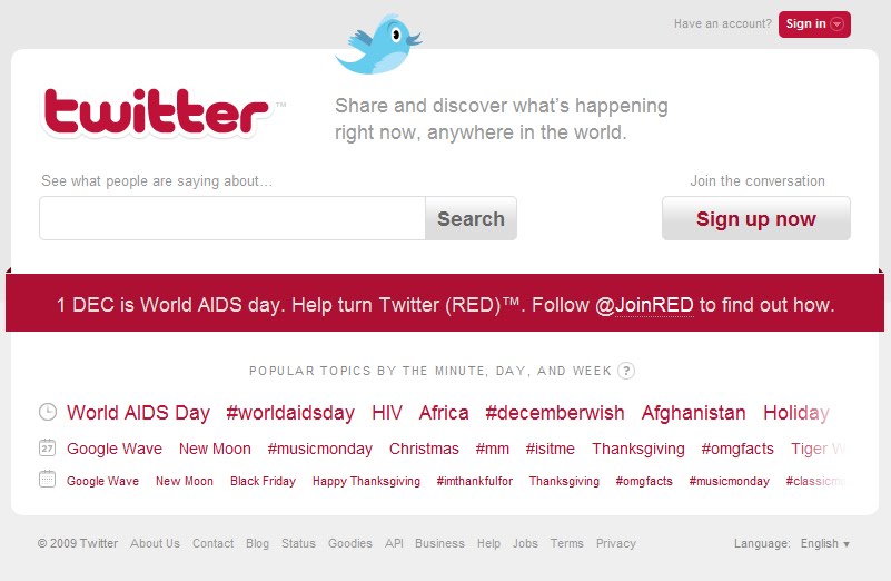 In support of World AIDS Day, Twitter and Facebook have gone (RED) for the day.