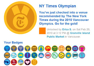 Above: The “NY Times Olympian” Foursquare Badge