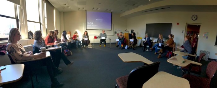 Thom Barthelmess leads CaldeNott Award deliberation at Simmons University.