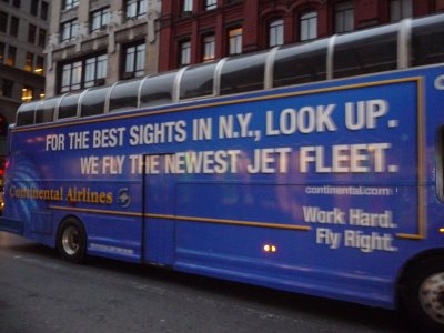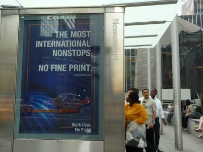 Above: A news stand ad (at Lexington Ave and 53rd Street) for Continental Airlines.