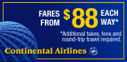 Above: A Continental Airlines ad in The New York Times Business section on Tuesday, March 31, 2009. (Size: 6 columns x 7 inches)
