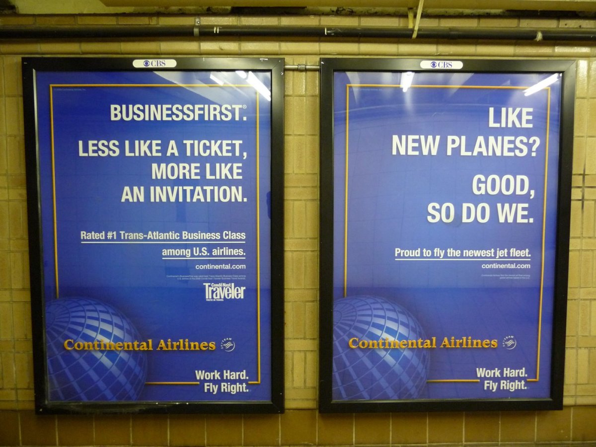 Above: A news stand ad (at Lexington Ave and 53rd Street) for Continental Airlines.