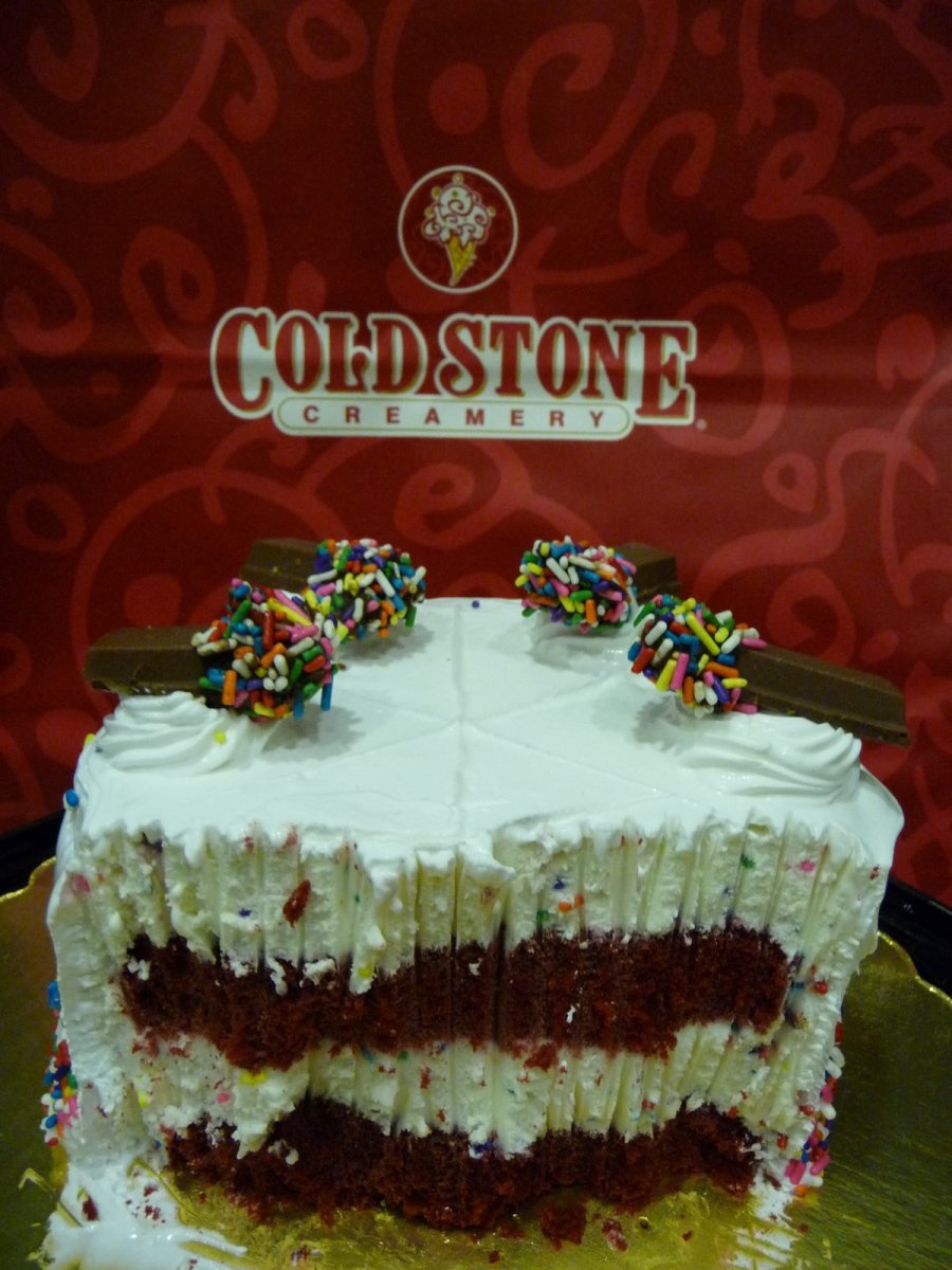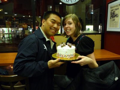 After class, we met up, napped a bit… and then! ICE CREAM CAKE! We walked to Cold Stone Creamery at Astor Place and Weikai treated me to a “Cake Batter Confetti” ice cream cake. Here’s the complete description: