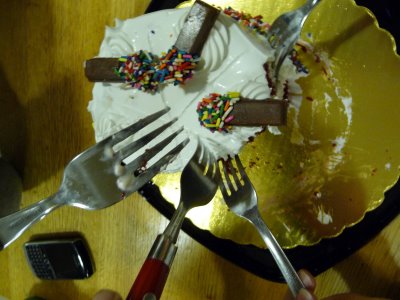 Above: After seeing Weikai off, I invited my suitemates (Jess, Neha and Maria) to come enjoy the cake with me! Along the way, we found Weijia and Shipra, too! Thank you for the cake, Weikai!!!!!!!!!!!!!!!!!!!!!!!!! I love you way more than ice cream cake (and chocolate, which you know I love a whole bunch)!!!