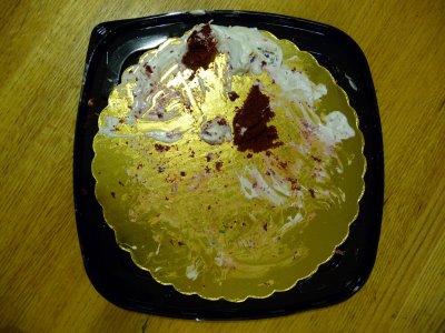 After eating some of the cake at Cold Stone Creamery, Weikai walked me home while I tried to guilt him into coming up and eating some more cake and then some rice and veggies for dinner at 11pm. He declined, so I said I’d go up and enjoy the cake with my suitemates. After acting like he was going to drop the cake, I said, “Don’t give me a heart attack!” In response, he whined, “You love the ice cream cake more than me! If I was going to fall, you’d be like, “Oh well!” I’m jealous of the cake! If you left me alone in the same room with it, I’d drop kick it!” hehehe. He’s cute.