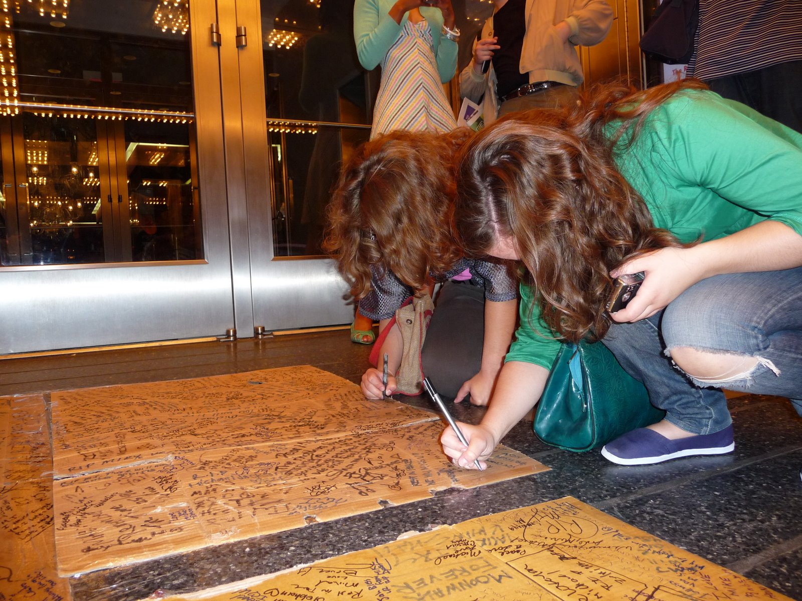 Weikai (my boyfriend) and I decided to check it all out. After a brief visit to Times Square, where we saw an awkwardly still Michael Jackson impersonator, we headed to Harlem. Exiting the subway, we heard MJ music blaring from many passing cars. The two-block walk to Apollo was pretty eventless, but upon arriving we heard music from various sources filling the air, saw a much more graceful and tasteful impersonator, spotted a few news crews (including CNN), witnessed fans signing a piece of cardboard in memory of Jackson, and passed by a few tchotchke-sellers.