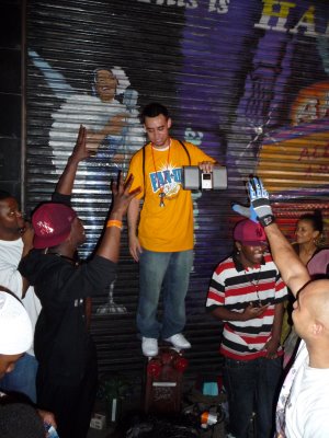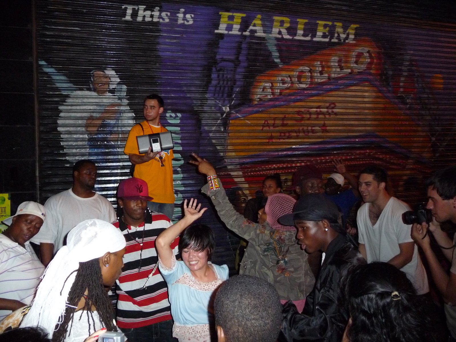 Above: Coined “DJ Standpipe” by the guy in the hat on the left, this Jackson fan played “what the people want to hear” all night across from Apollo Theater.