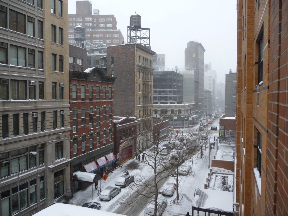 Today is March 2, 2009. New York City is in the midst of a winter snow storm. Let’s take a look out of my dorm windows. I’m located at NYU Palladium, on East 14th Street, between 3rd and 4th Avenues. It’s definitely a winter wonderland…